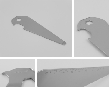 LACKDOSENÖFFNER NR. 7292-E Maße / Material:		ca. 13,2 cm, Edelstahl Funktionen:			Farbdosenöffner / Lackdosenöffner, 3 verschiedene Öffner für Farbdosen,  10-er Schlüssel, Lineal mit cm oder inch, Flaschenöffner   MADE IN SOLINGEN/GERMANY zurück zurück vor vor